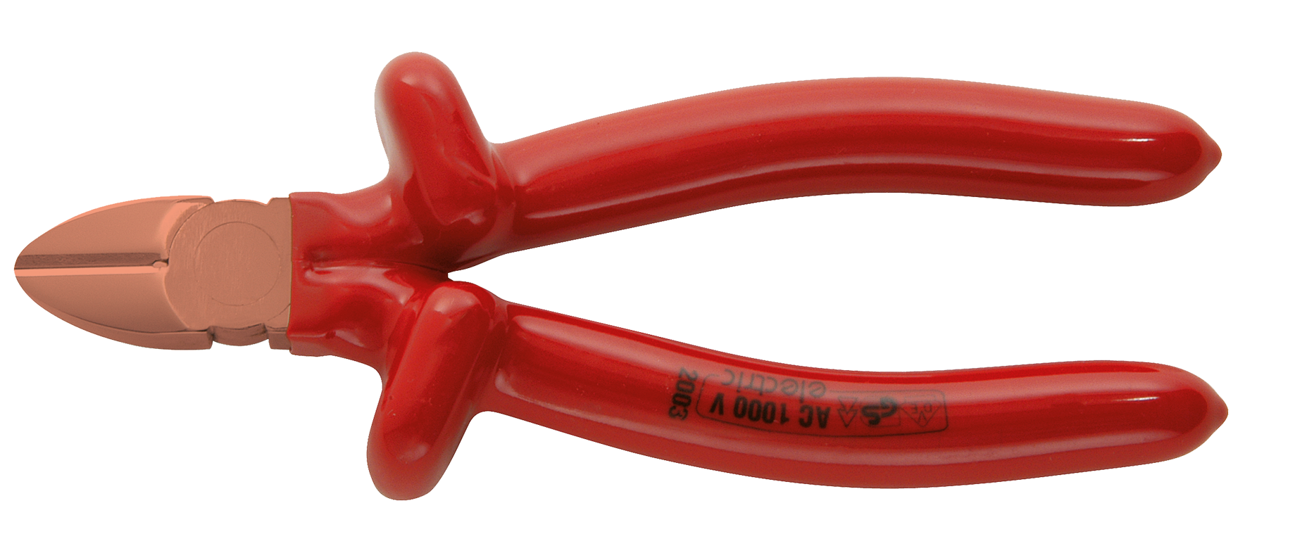 Volledig geïsoleerde tang met gecoate werkkop om kortsluiting te voorkomen, met een beperkte openingshoek van 30°