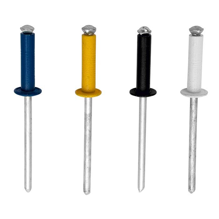 Hoge kwaliteit, gekleurde blindklinknagels speciaal ontworpen voor effectieve, discrete bevestiging en reparatiewerkzaamheden aan auto's, kentekenplaten, motoren, campers, aanhangwagens en andere voertuigen. Boor met de juiste diameter is meegeleverd in de verpakking.