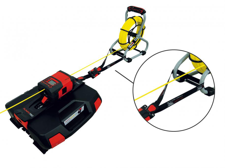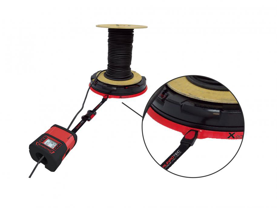 Met behulp van het riem- en clipsysteem kan de Runpometer RM35 eenvoudig worden aangesloten op het X BOARD XB 300 of XB 500 kabelafwikkelsysteem