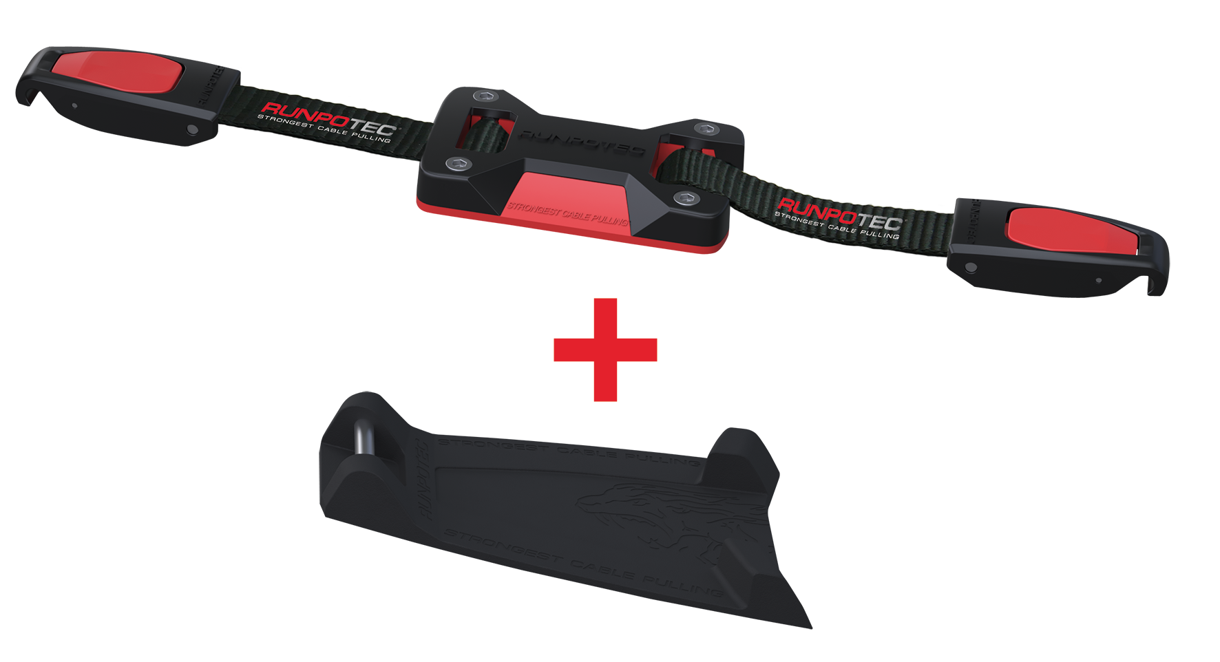 De riem met clipsysteem kan ook worden aangesloten op de RUNPOTEC kabeltreksystemen