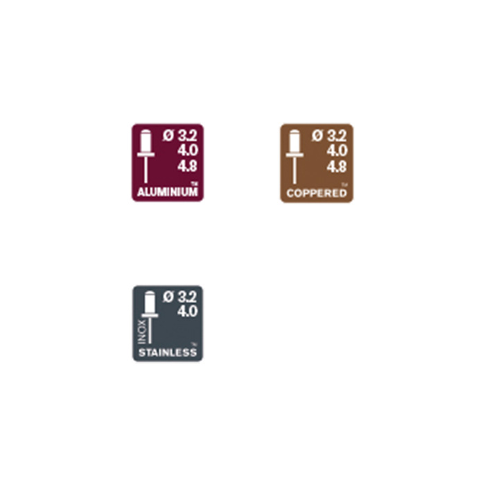 • Voor 3,2 , 4,0 en 4,8 mm aluminium blindklinknagels