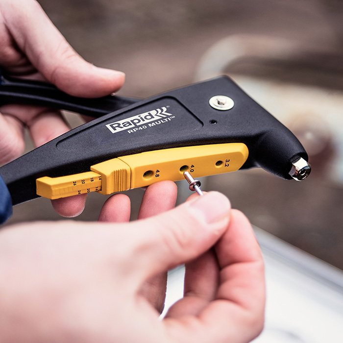 Geniet van het gemak van een alles in één blindklinknageltang. Dankzij het unieke Multi mondstuk hoeft bij de RP40 Multi niet meer van mondstuk gewisseld te worden. Dit betekent sneller werken en een optimaal resultaat bij het bevestigen van allerlei soorten metaal. De RP40 Multi beschikt ook over een slimme schuifmaat voor het meten van de diameter van de blindklinknagels en materiaaldikte. Dit garandeert altijd een perfecte verbinding. Verdere kenmerken zijn een softgrip handgreep voor maximaal comfort, geharde metalen delen voor langere levensduur en een duurzame mat zwarte afwerking.