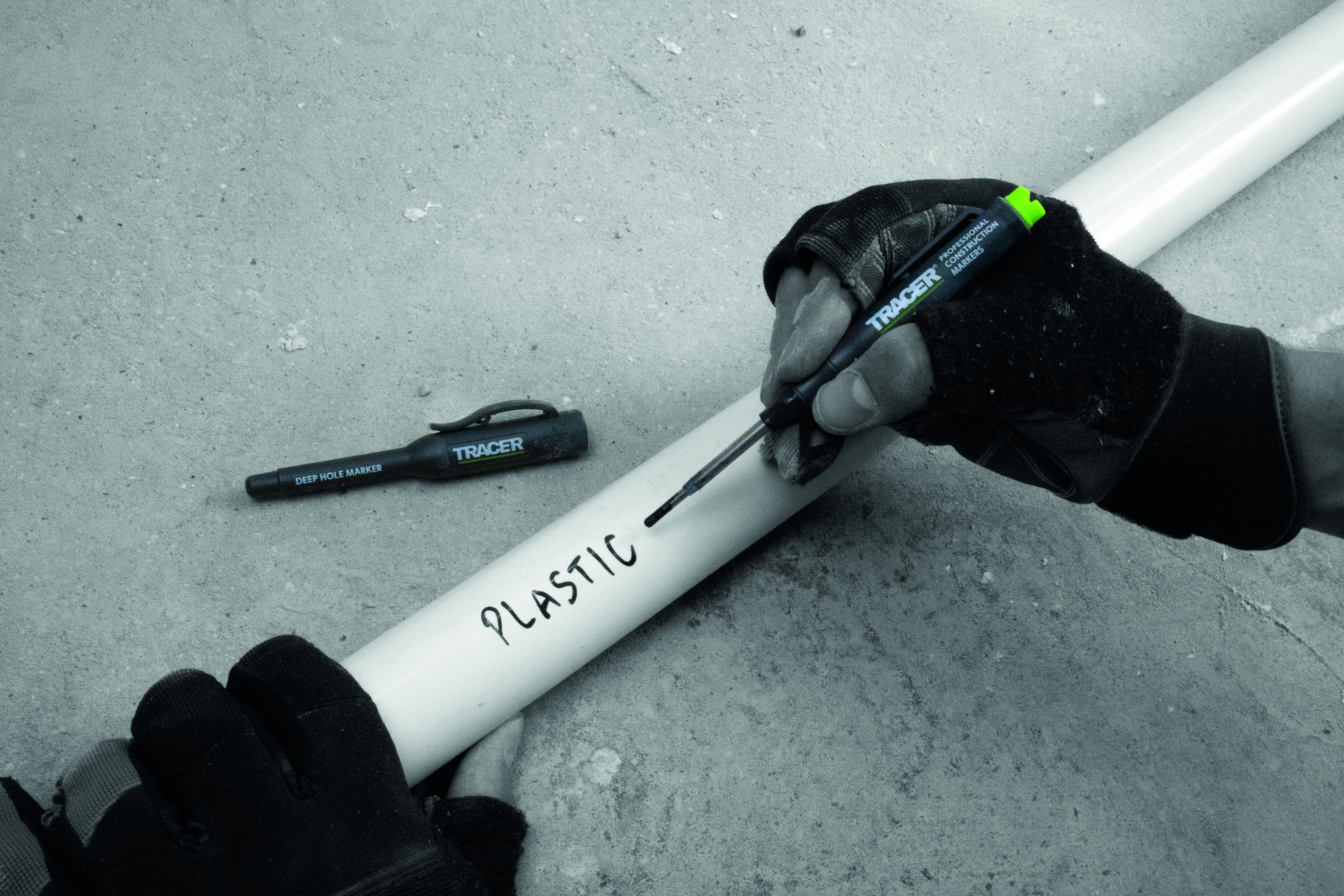 Het unieke ontwerp van de TRACER diepgatmarker heeft een dubbele punt die kan worden omgekeerd om zowel dikke als dunne lijnen te markeren.