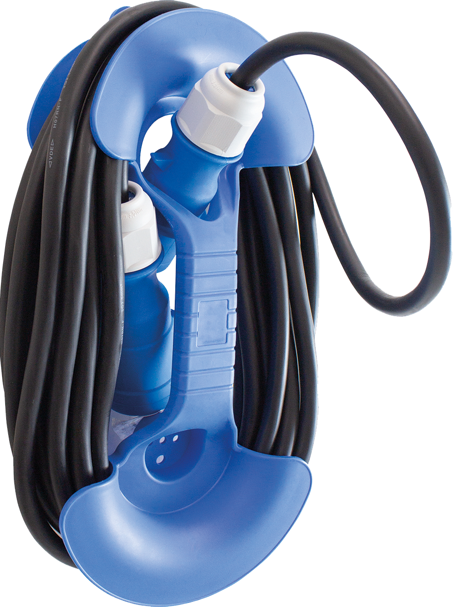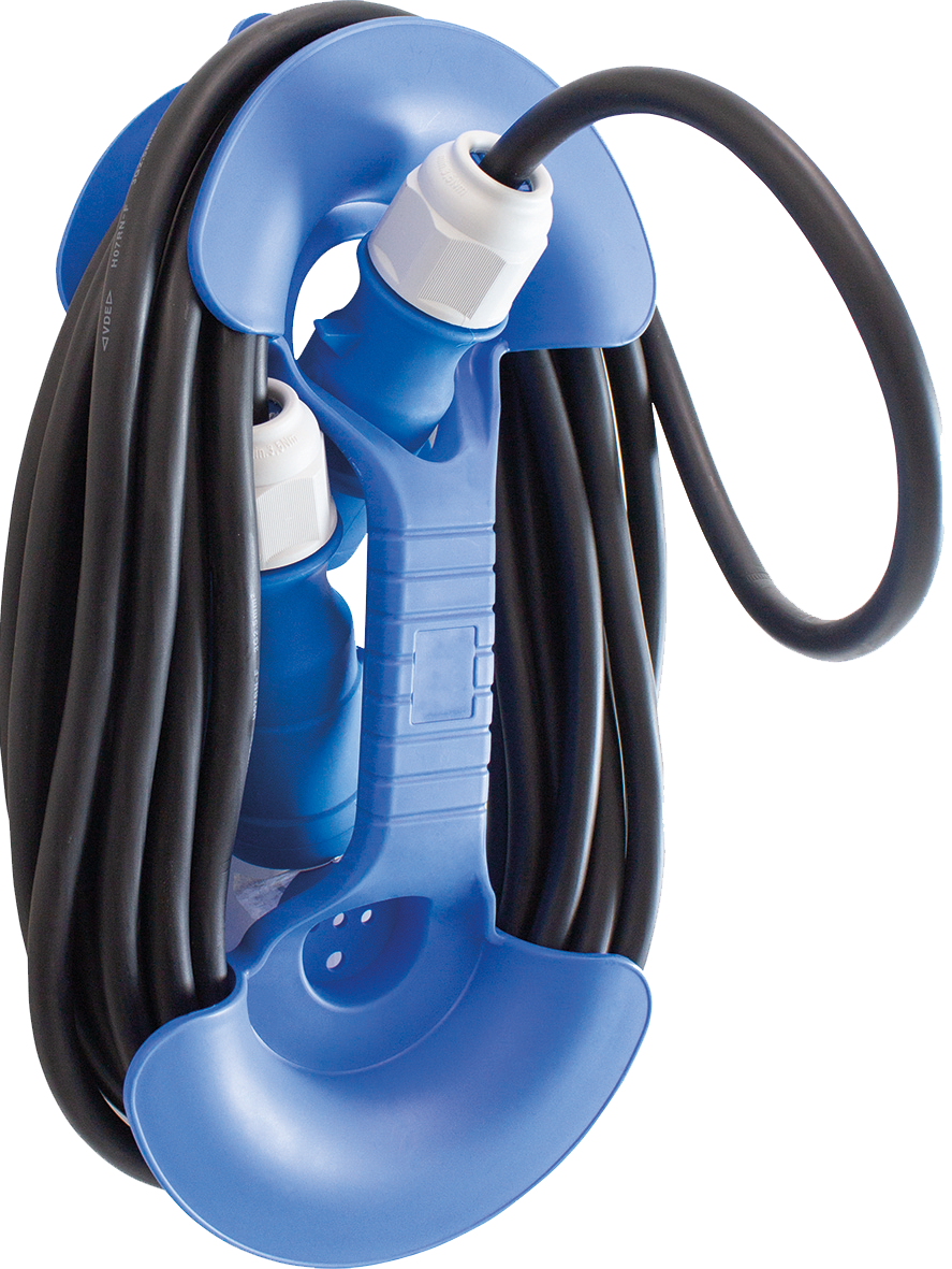 Handig hulpmiddel bij het handmatig oprollen van verlengkabels en verloopkabels