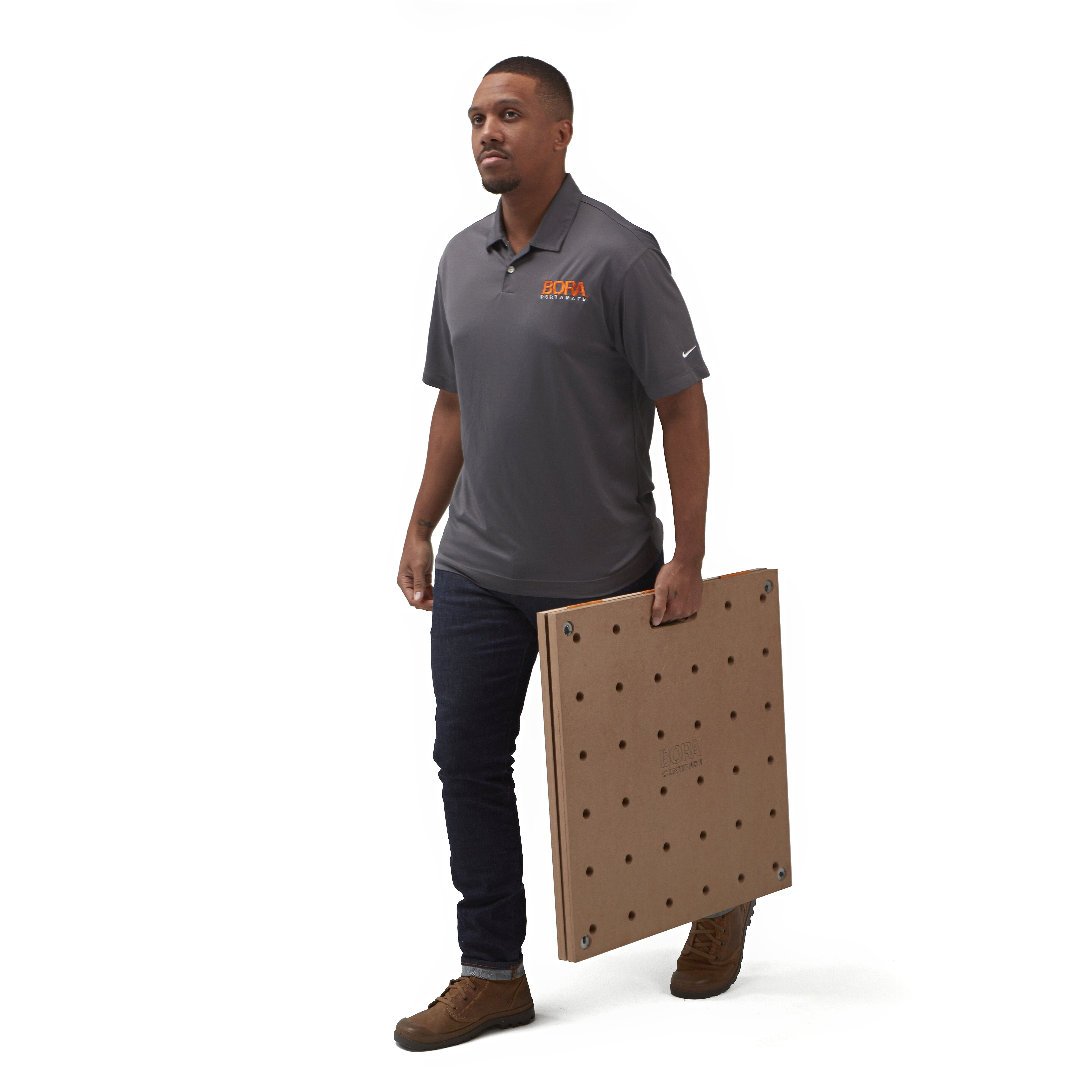 • Met de draaggleuf kun je het tafelblad in één hand dragen en de Centipede® werkstandaard in de tas