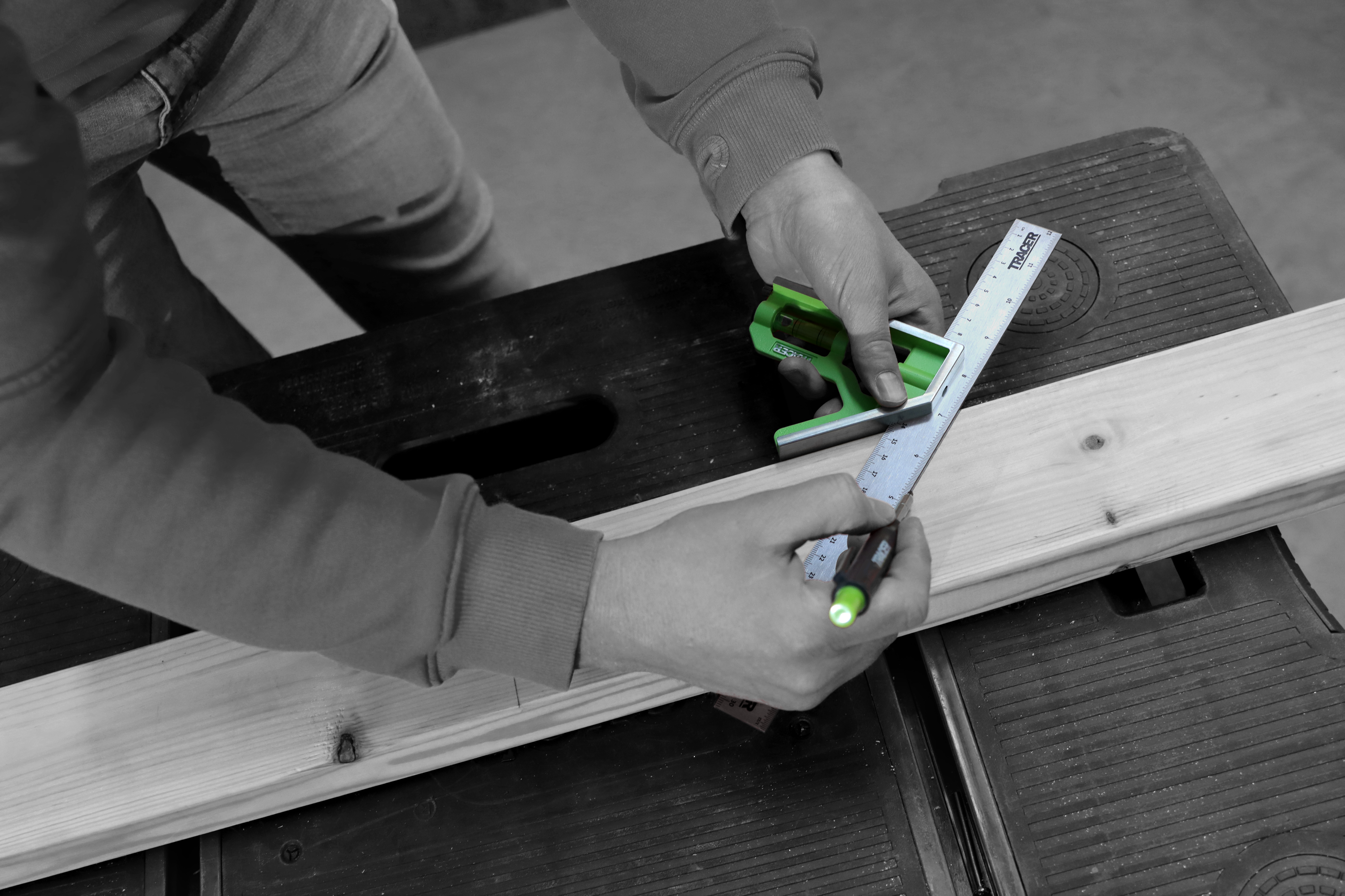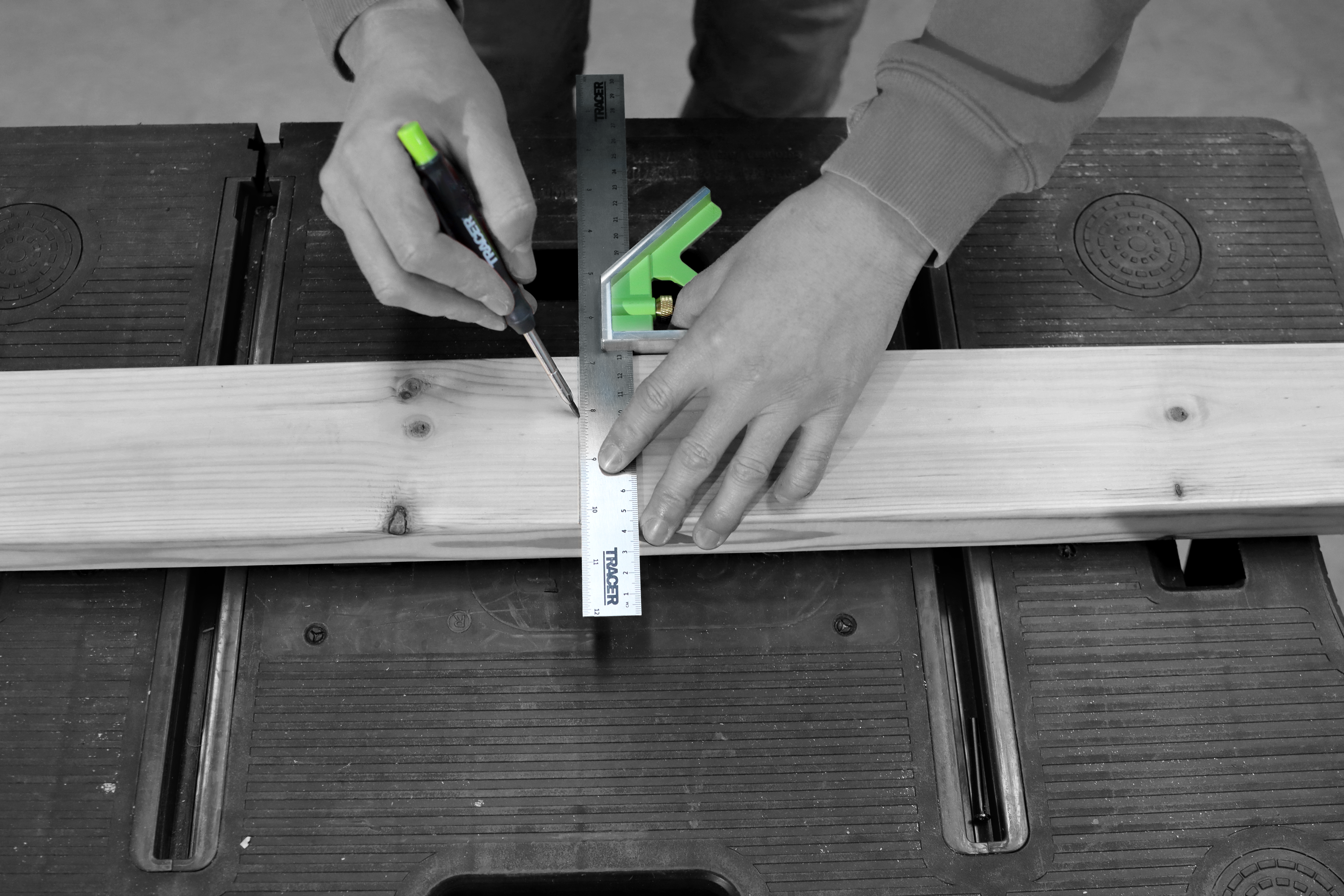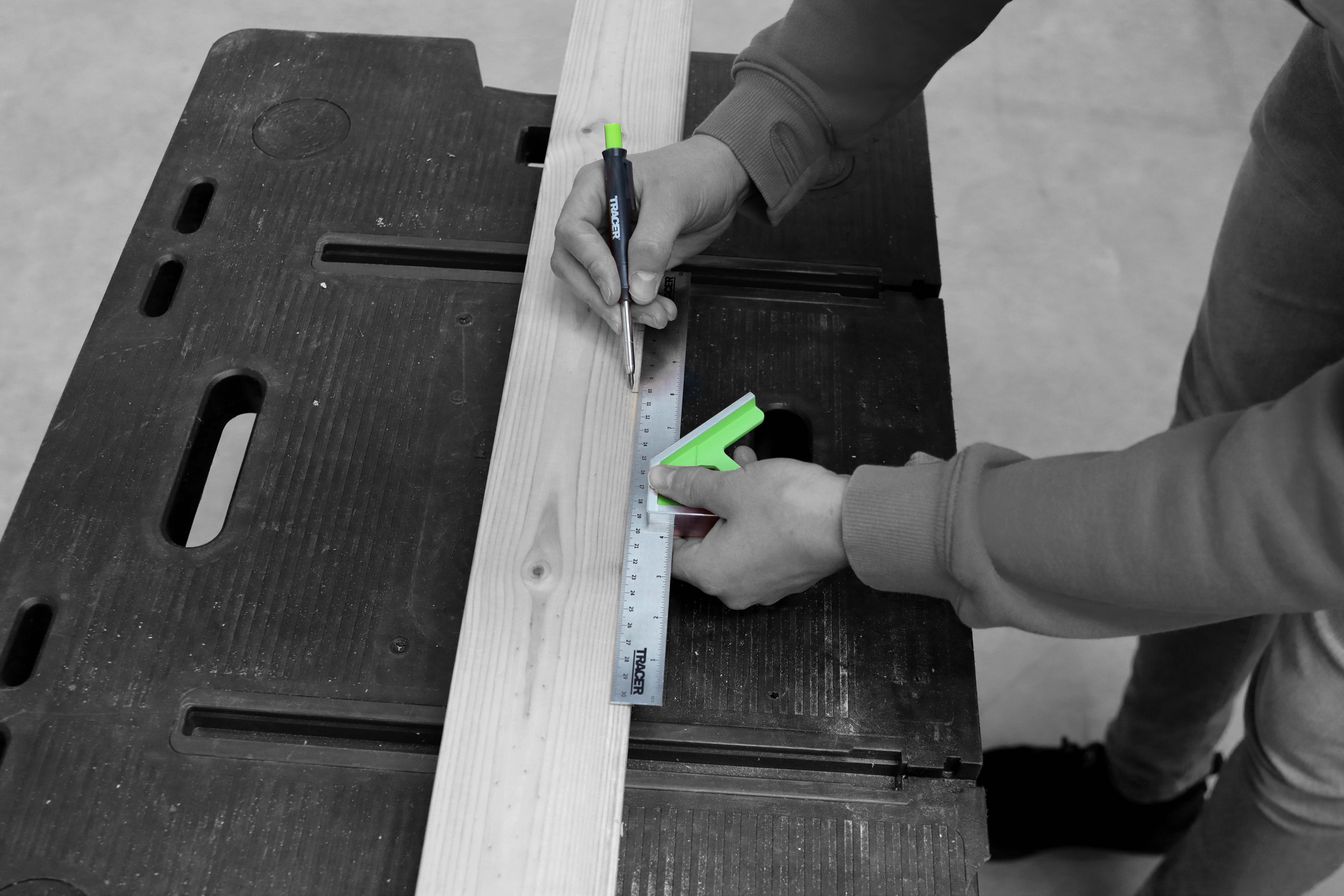 Uitgerust met zowel imperiale als metrische schalen, is de TRACER-combinatie winkelhaak ontworpen voor eenvoudige en nauwkeurige horizontale en verticale precisiemarkering