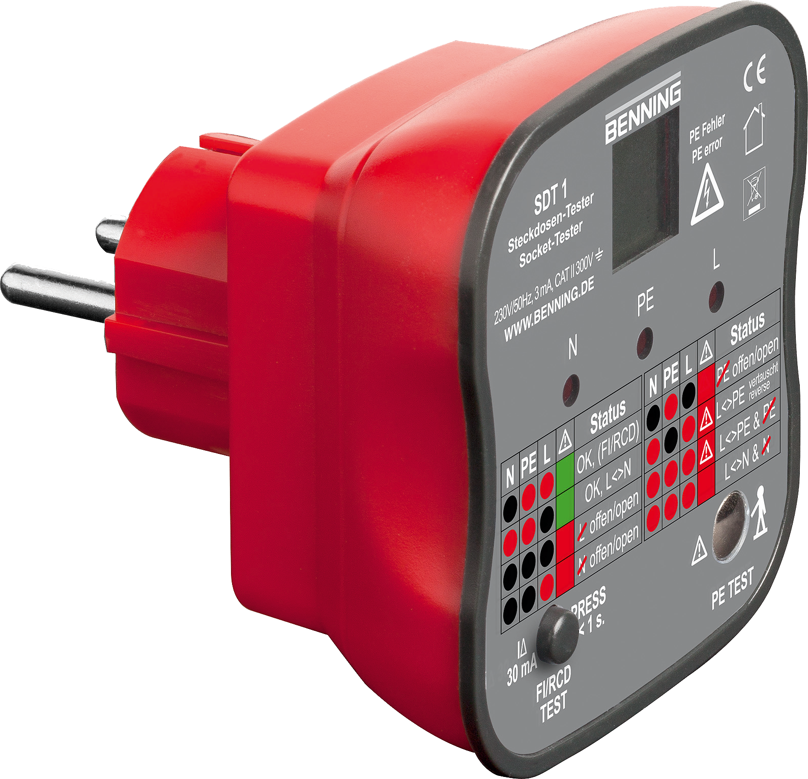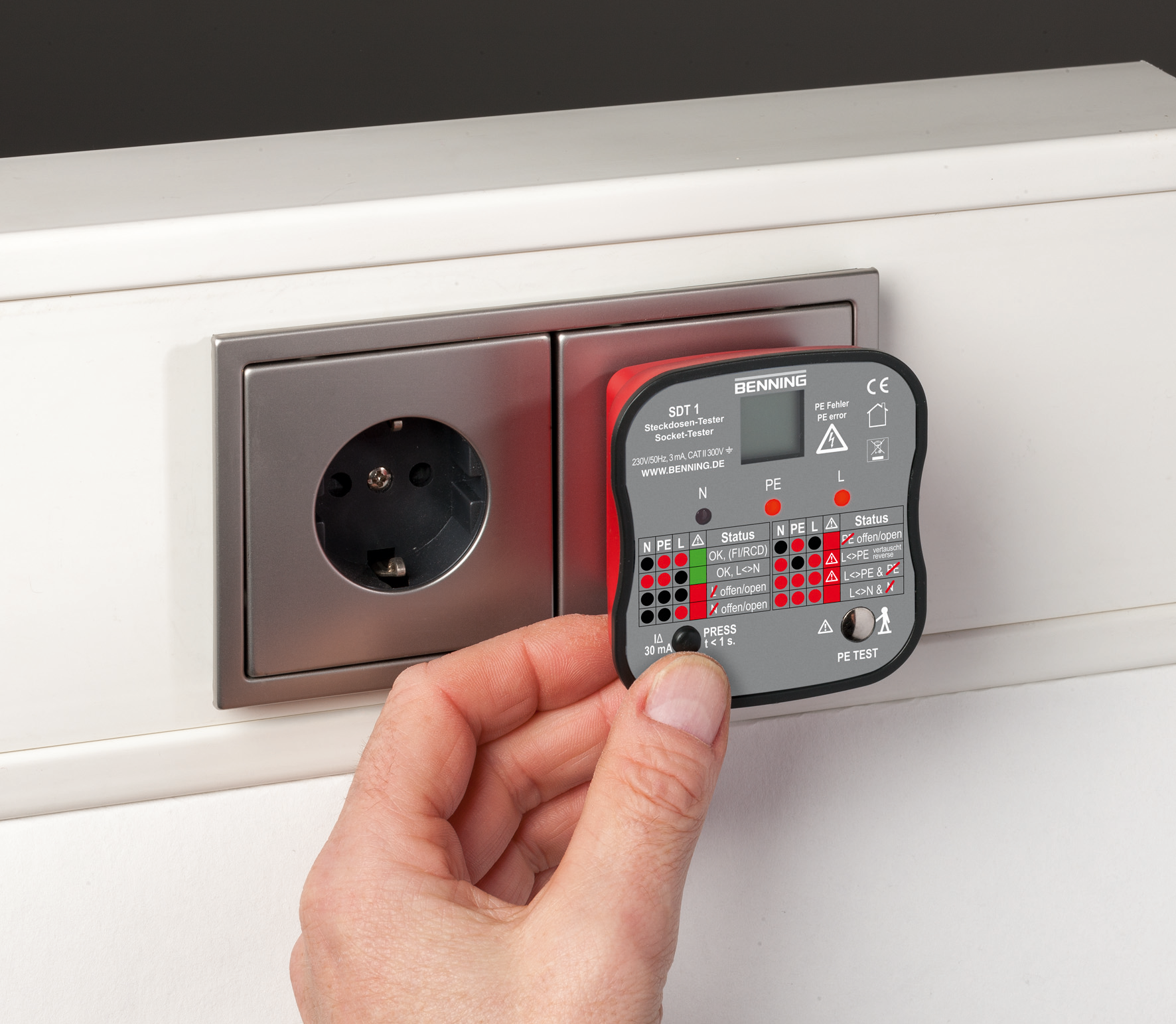 Snelle en eenvoudige test van de correcte aansluiting van wandcontactdozen, kabelhaspels en verlengkabels