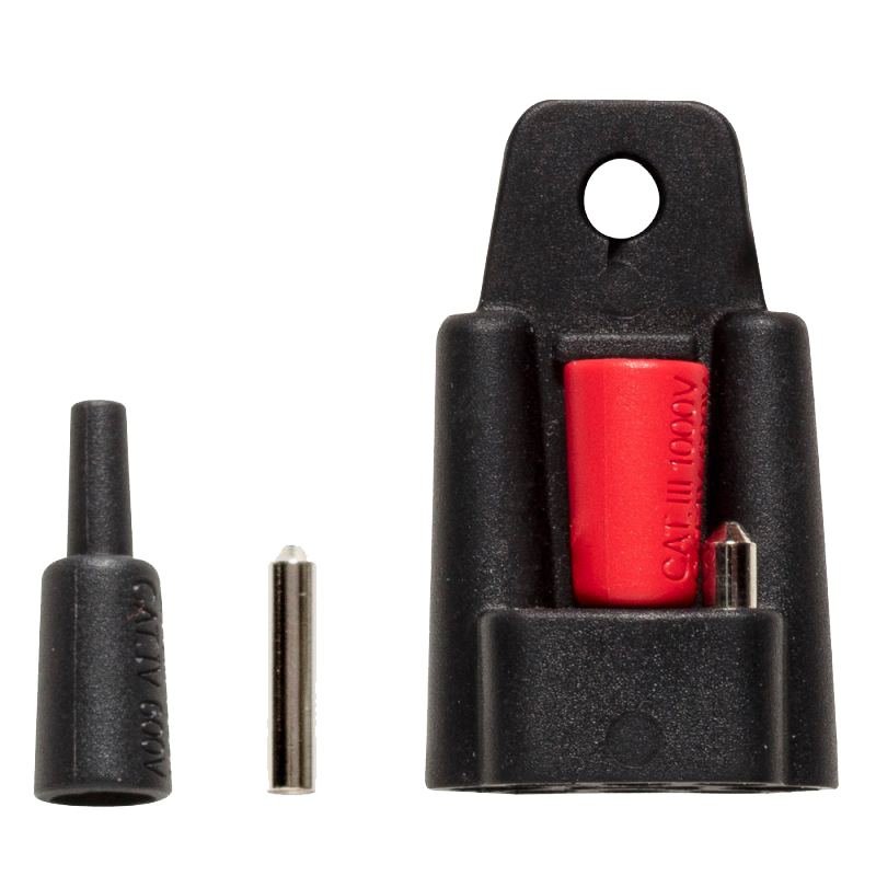 • Eén set opsteekdoppen (CAT III/IV), rood/zwart, om de lengte van het ongeïsoleerde deel van de contactpunten te verkorten