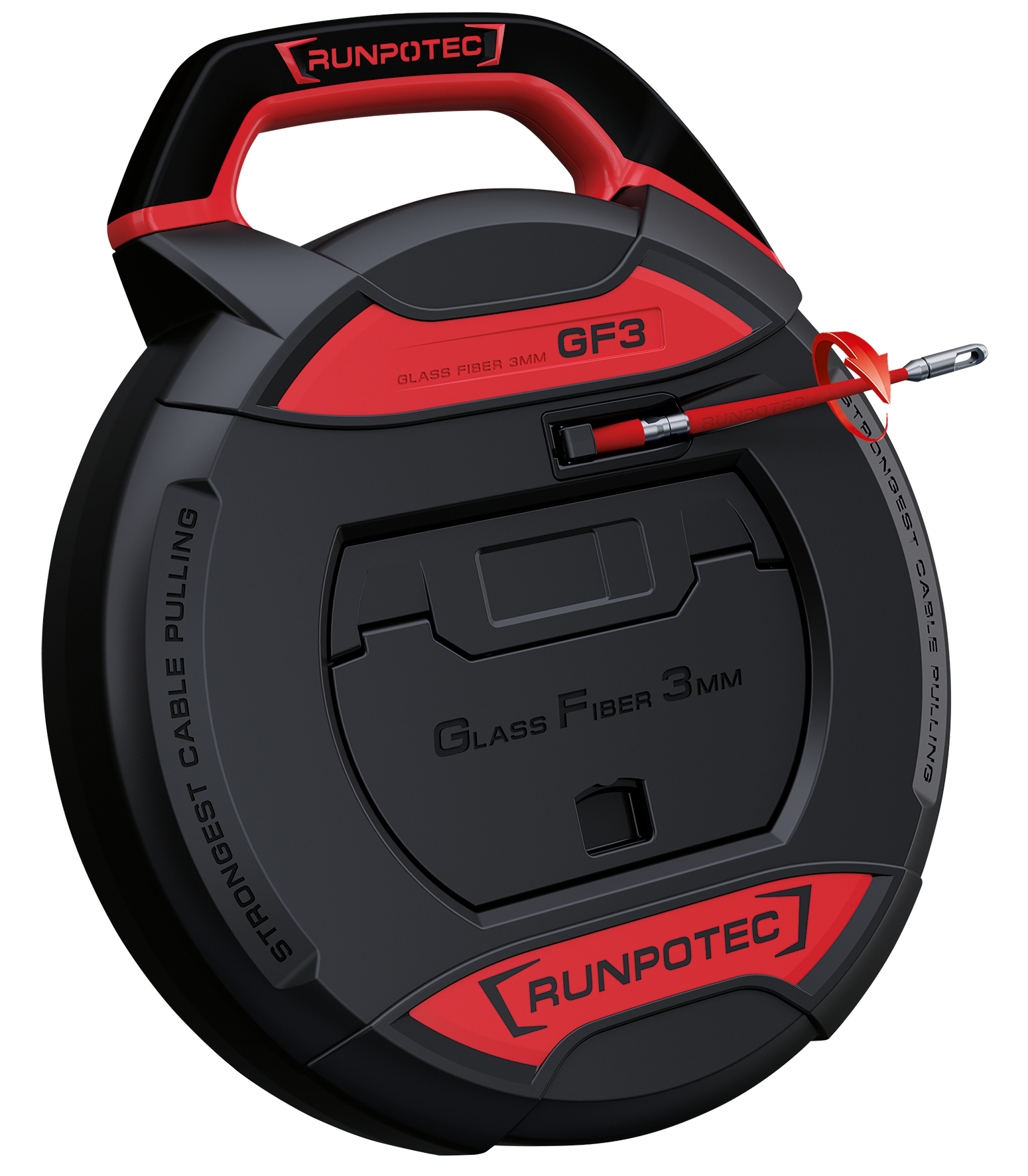 Dankzij de nieuw ontwikkelde knikbeschermingstechnologie kunnen buigradiussen tot R = 38 mm worden overwonnen. De opgegeven totale breekkracht van 130 kg heeft betrekking op de glasvezeltrekveer inclusief anti-knikhulzen. Uitstekend in combinatie met de RUNPOTEC inspectiecamera's.