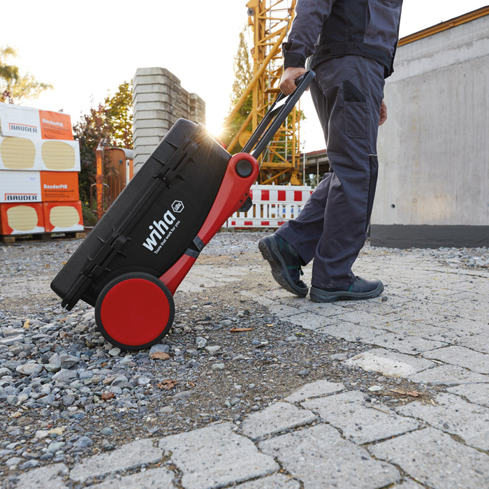 De gereedschapskoffer XXL III Elektrik van Wiha bevat een uitgebreid gereedschapsassortiment, voldoende opbergruimte en absolute robuustheid