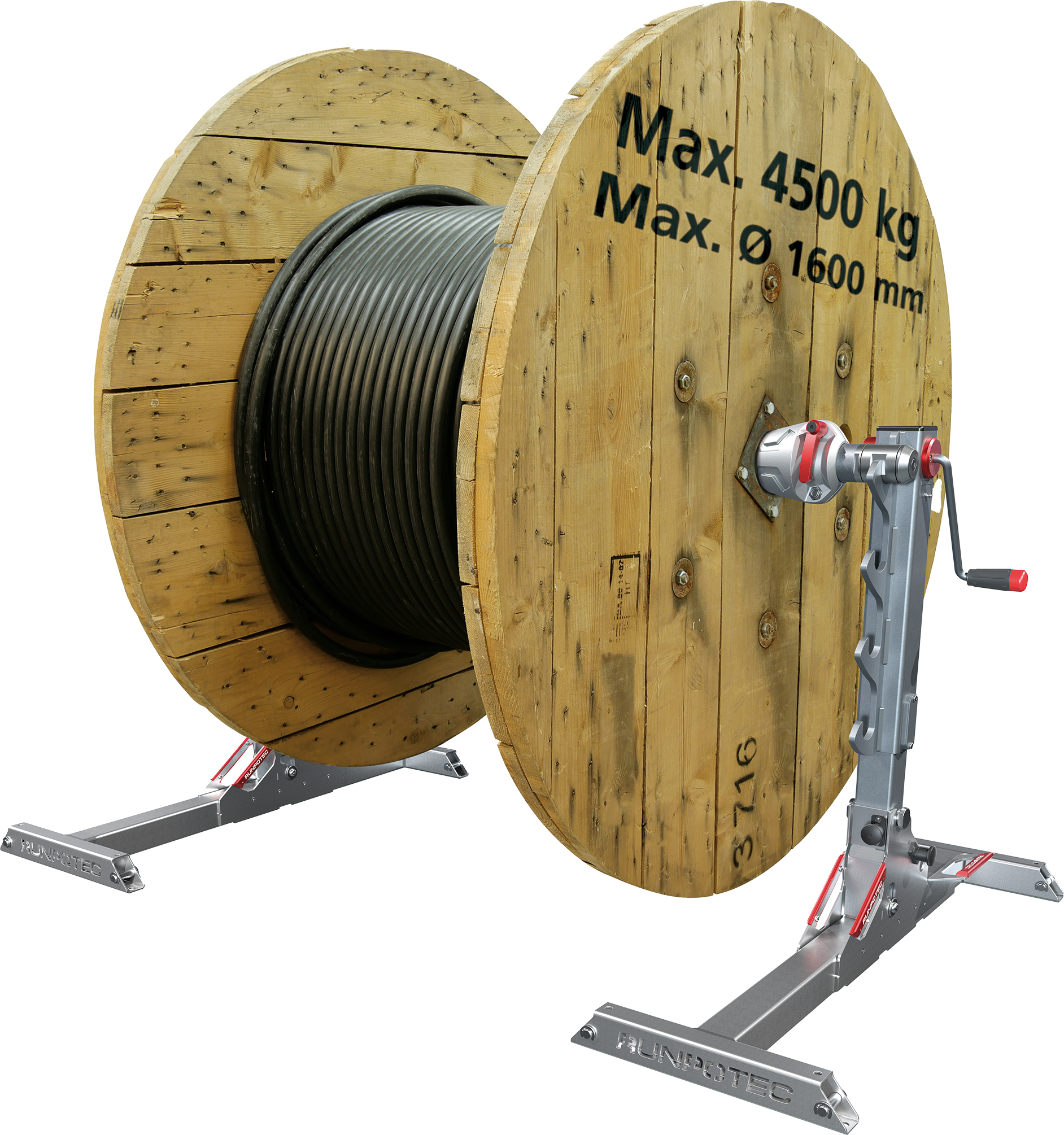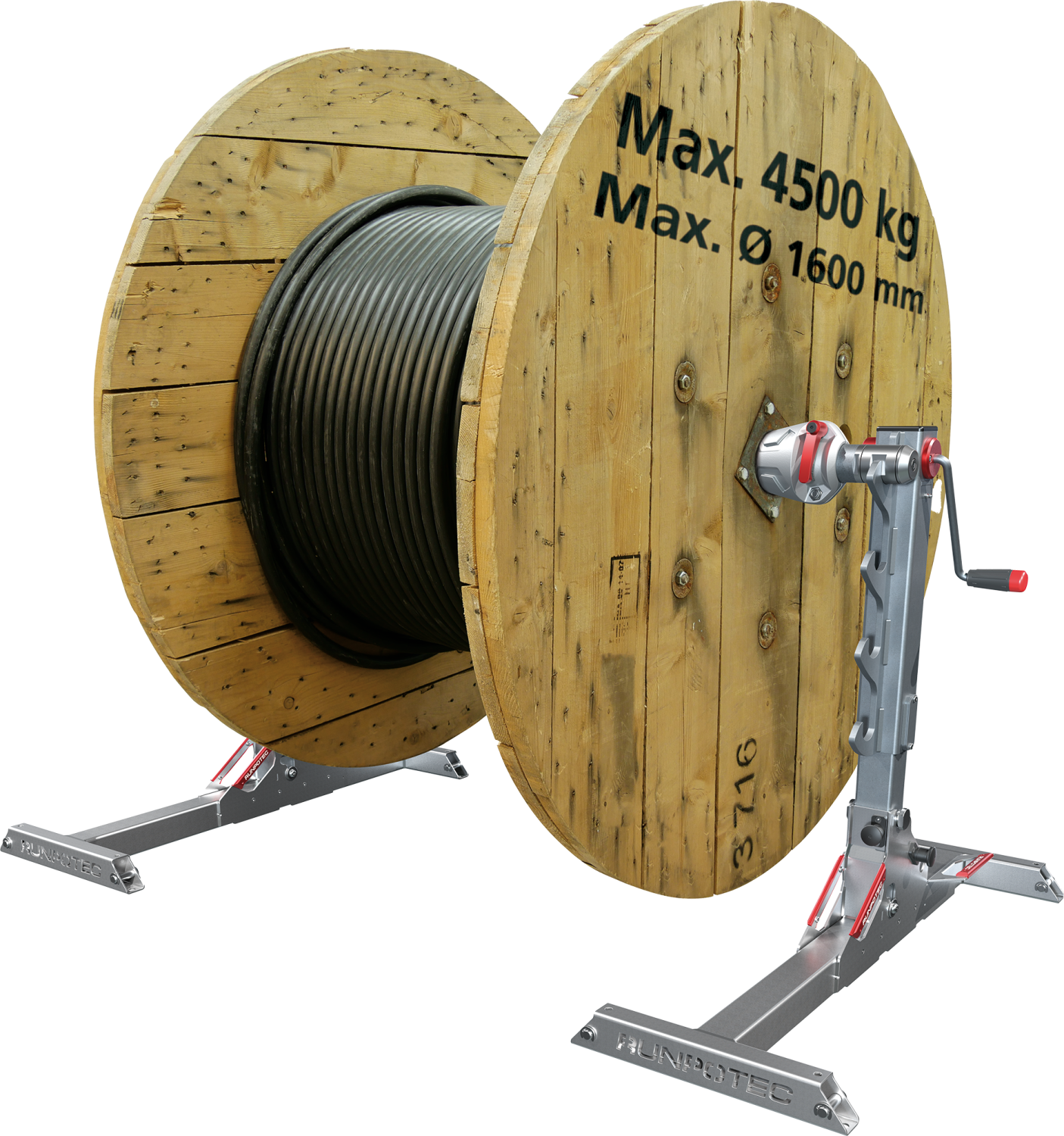 De twee hefsteunen hebben een 2-traps hefsysteem. De snelle stand voor het snel bereiken van het punt waarop de kabeltrommel begint met liften en de power stand voor het daadwerkelijke optillen van de kabeltrommel. Schakelen tussen de twee standen kan eenvoudig worden geregeld door het uittrekken en induwen van de as waaraan de slinger is gemonteerd.