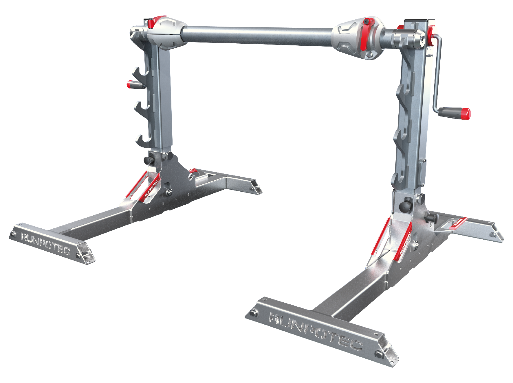 De twee hefsteunen hebben een 2-traps hefsysteem. De snelle stand voor het snel bereiken van het punt waarop de kabeltrommel begint met liften en de power stand voor het daadwerkelijke optillen van de kabeltrommel.