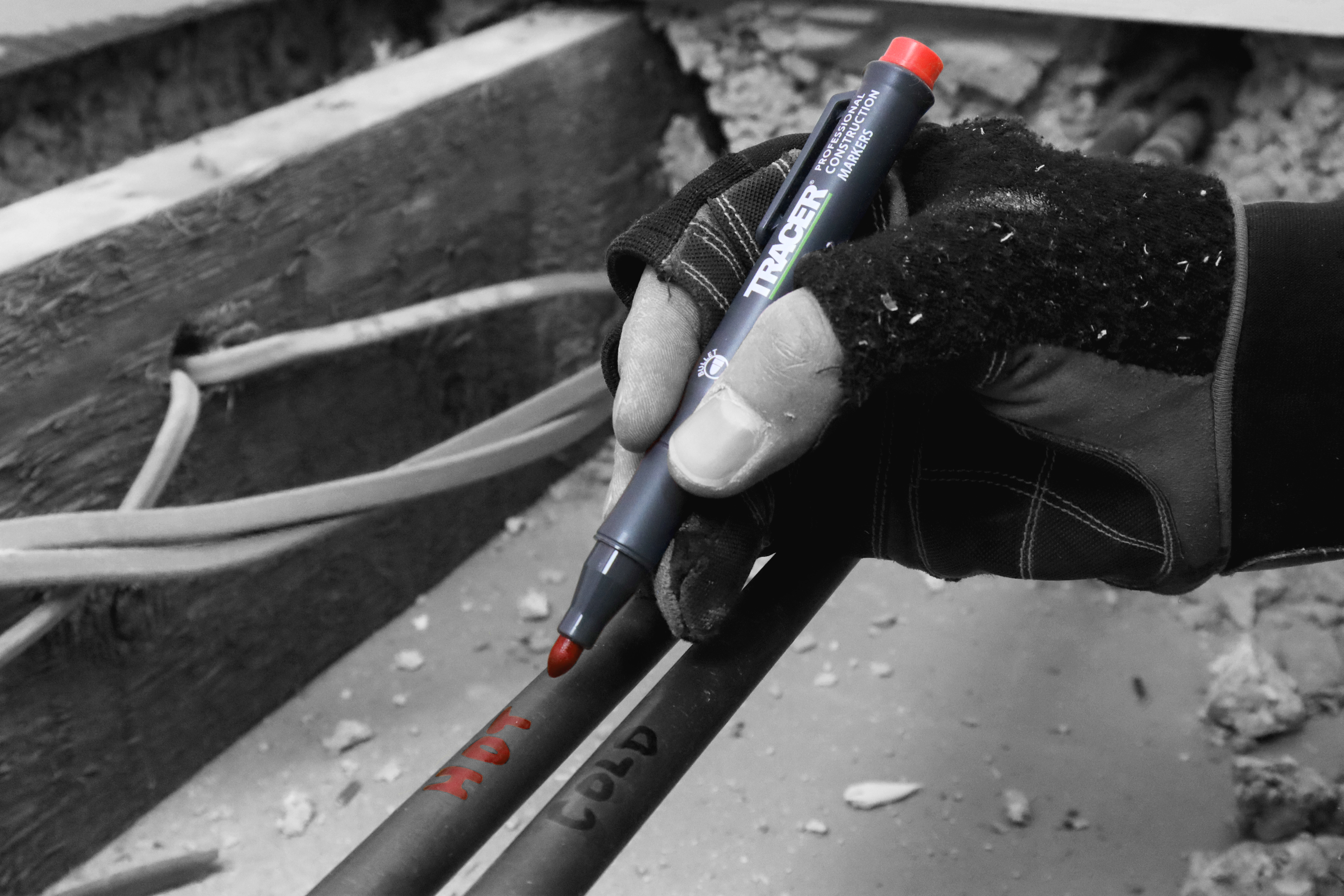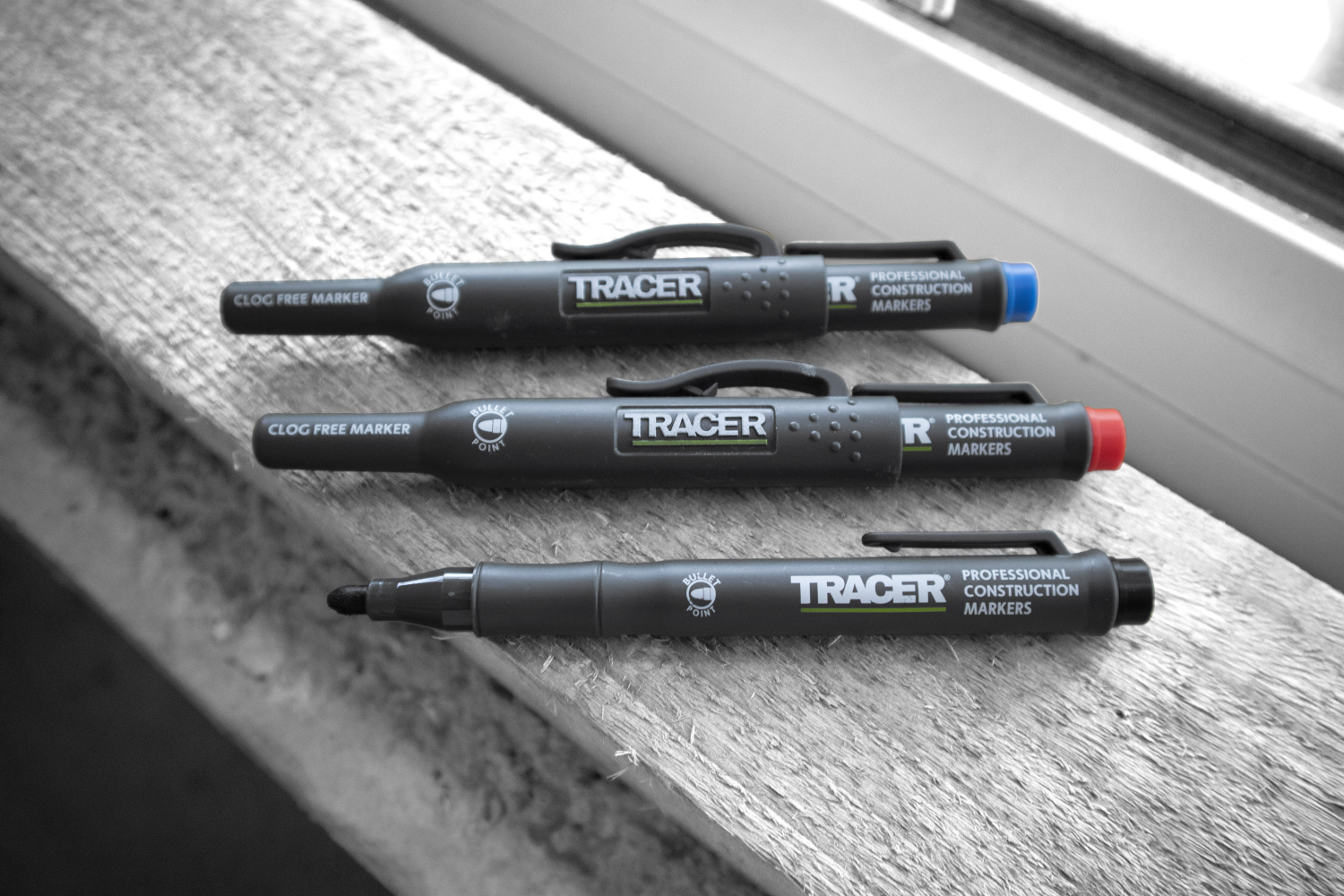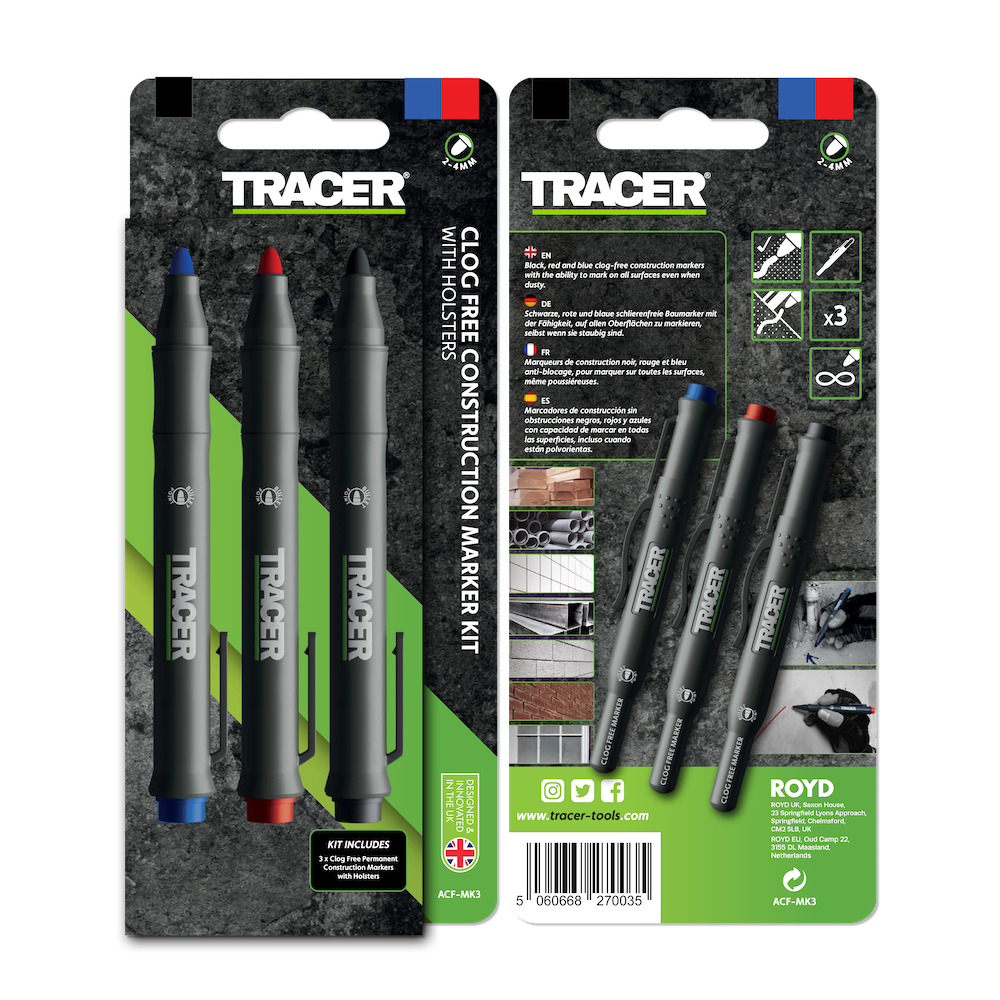 Met de universele verstoppingsvrije bouwmarker is het mogelijk om op bijna elk oppervlak te markeren, inclusief stoffige en glanzende oppervlakken.