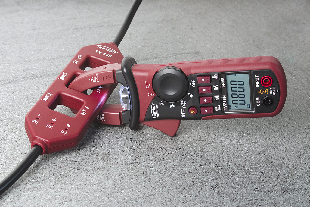 Met stroomtang bepalen van: belastingsstroom, verschilstroom tussen fase en nul en de aardlekstroom