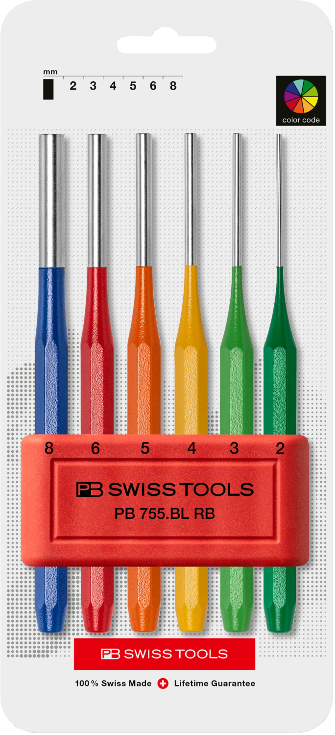 PB RainBow Pendrijverset 755.BL RB in houder 2-8mm, 6-delig in blister