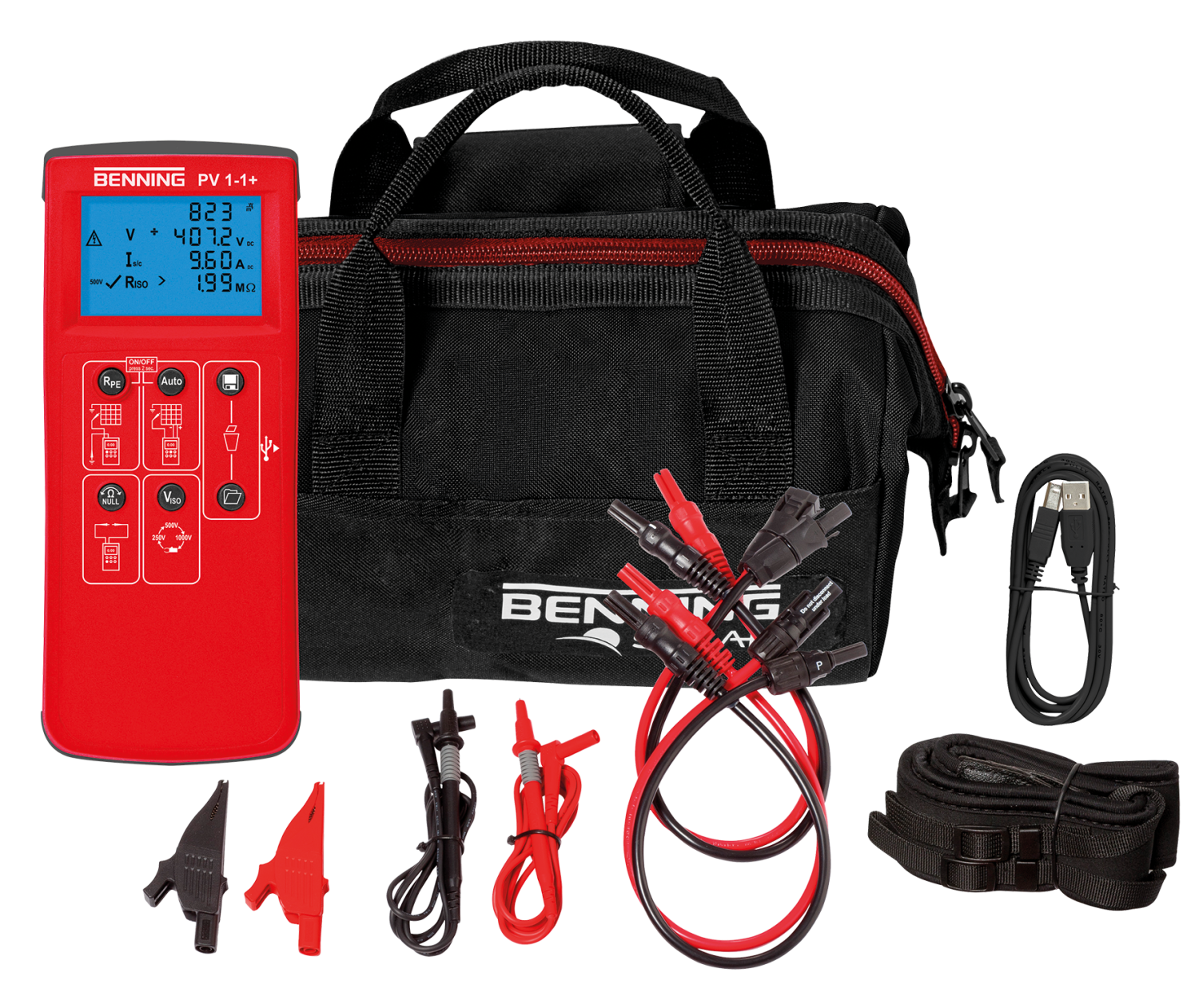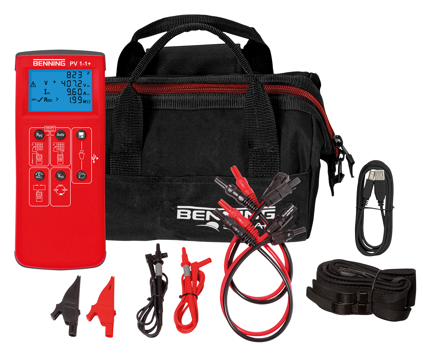 - De BENNING PV 1-1+ is een verdere ontwikkeling van de BENNING PV 1-1 en biedt verbeterde testcompatibiliteit van de nieuwste technologie PV-modules met een hoog rendement