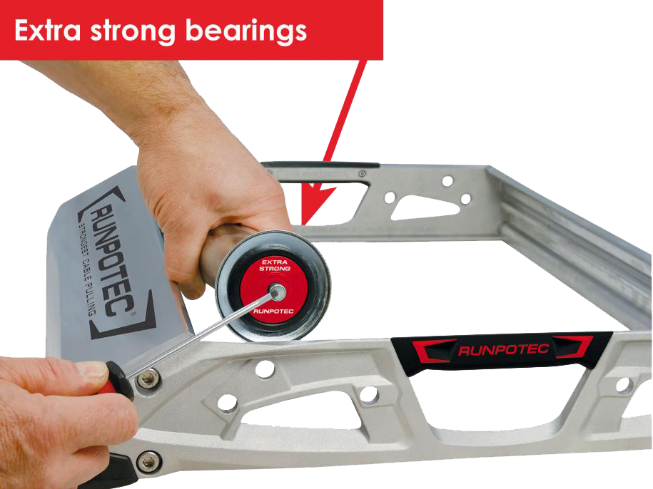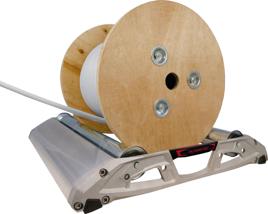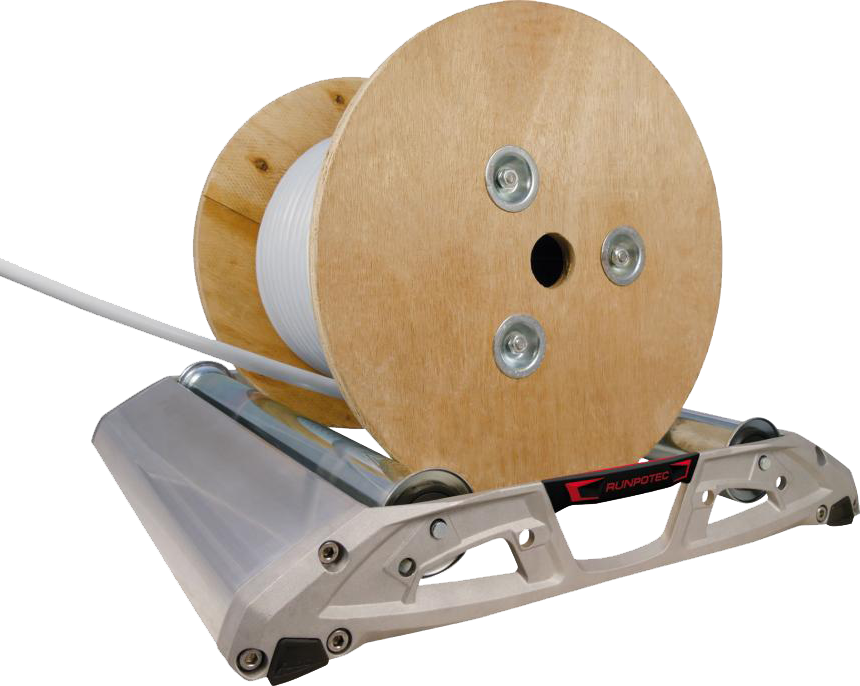 De innovatieve hoogwaardige kabeltrommel van RUNPOTEC is gemaakt van licht en solide aluminium met robuuste, verstelbare steunrollen. Uitstekend geschikt voor de hoogste belastingen in dagelijks gebruik.