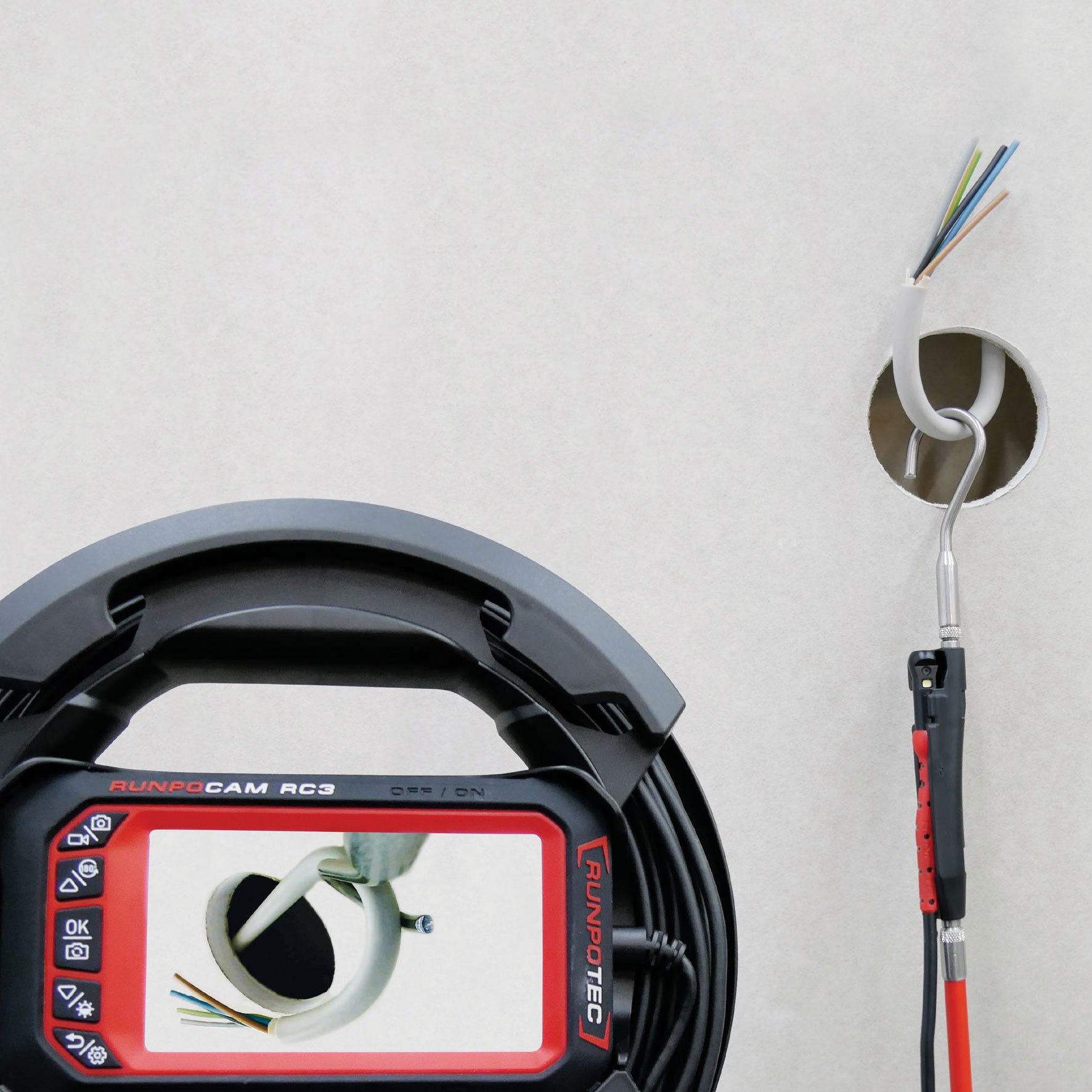 De camera is perfect voor gebruik op moeilijk bereikbare plaatsen, omdat hij via WiFi kan worden bediend met behulp van de RC3-app op uw smartphone. Of het nu gaat om holle wanden, buizen met een binnendiameter van 14 mm of ventilatiesystemen - de RC3 levert haarscherpe beelden, is eenvoudig te bedienen via mobiele apparaten en heeft een beschermingsklasse van IP67.