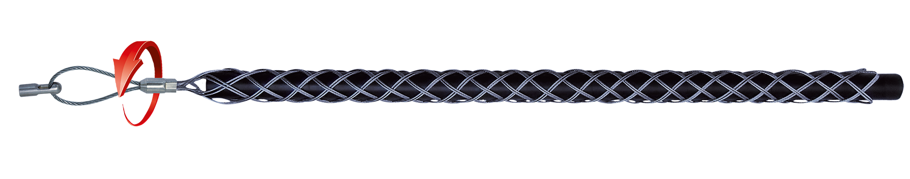 Uit RVS draad geweven trekkous met anti-torsie as die er voor zorgt dat de kabel en de trekveer ten opzichte van elkaar kunnen draaien