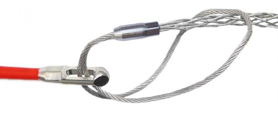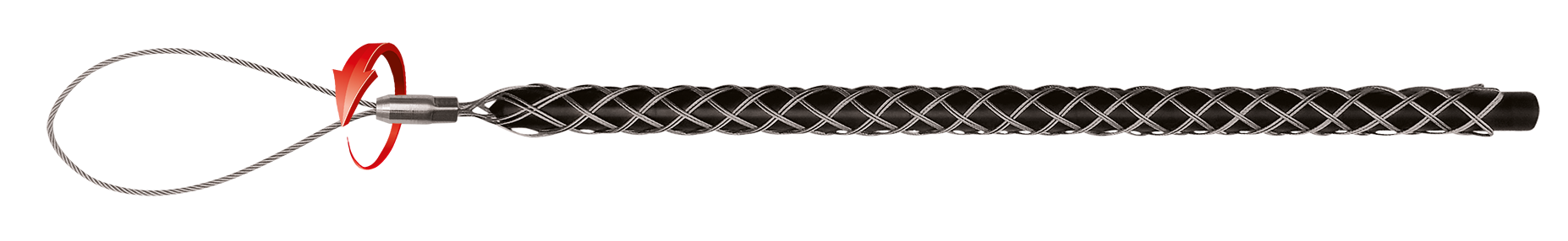 Uit RVS draad geweven trekkous met anti-torsie as die er voor zorgt dat de kabel en de trekveer ten opzichte van elkaar kunnen draaien