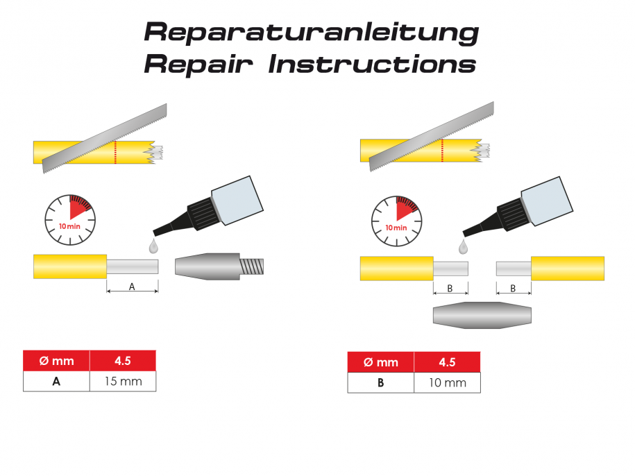 4-delige set voor het repareren van glasvezelprofielen. Alle reserveonderdelen zijn gemaakt van hoogwaardig RVS. De speciale lijm is transparant, heeft een zeer hoge weerstand en 20% meer kleefkracht als vergelijkbare lijmen.