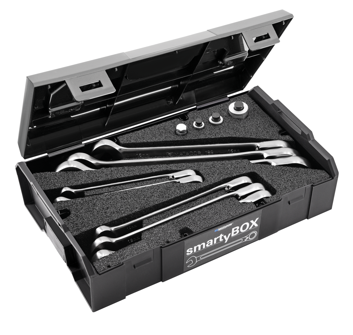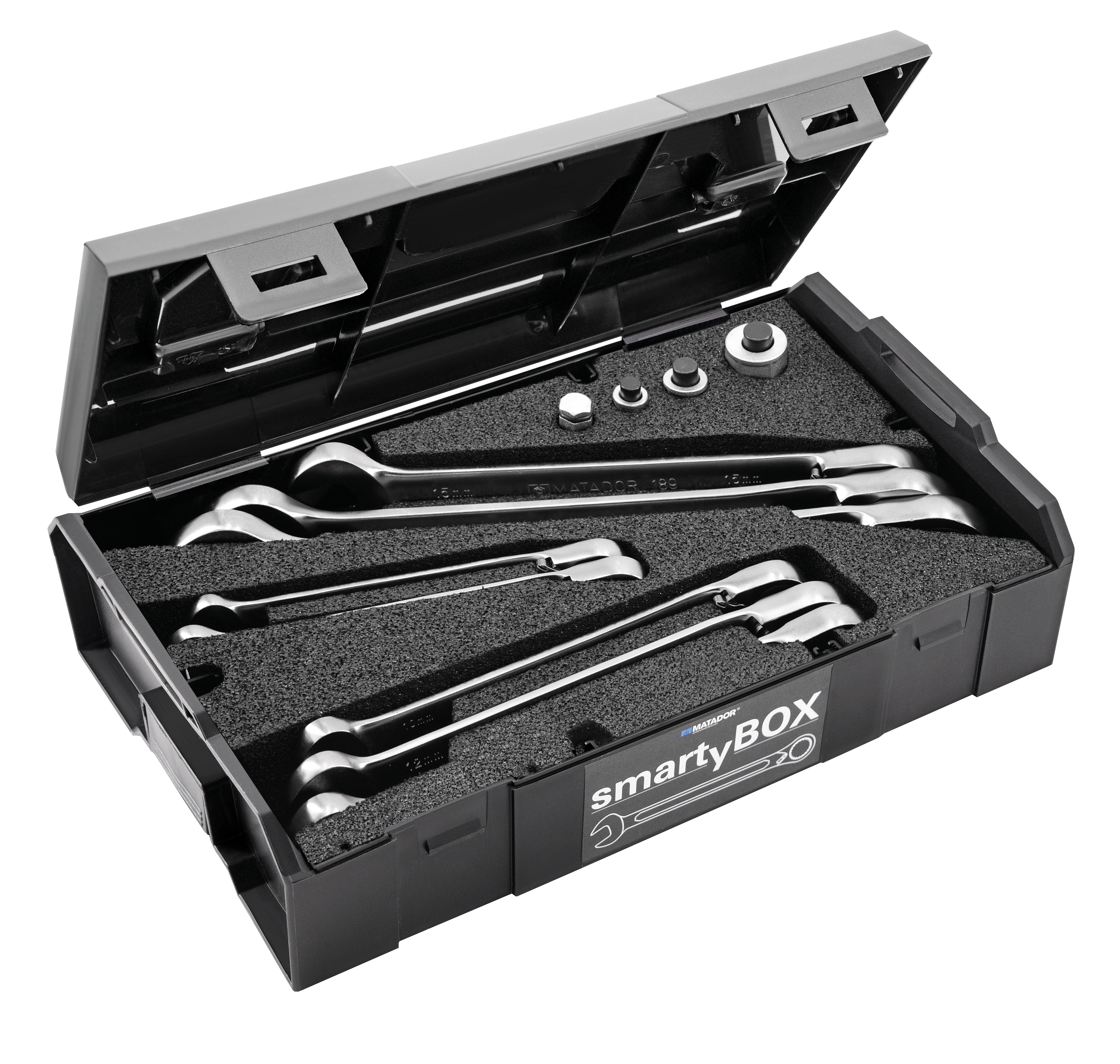 Ringsteeksleutelset met Ratel 7-19mm in SmartyBox S3, 12-delig