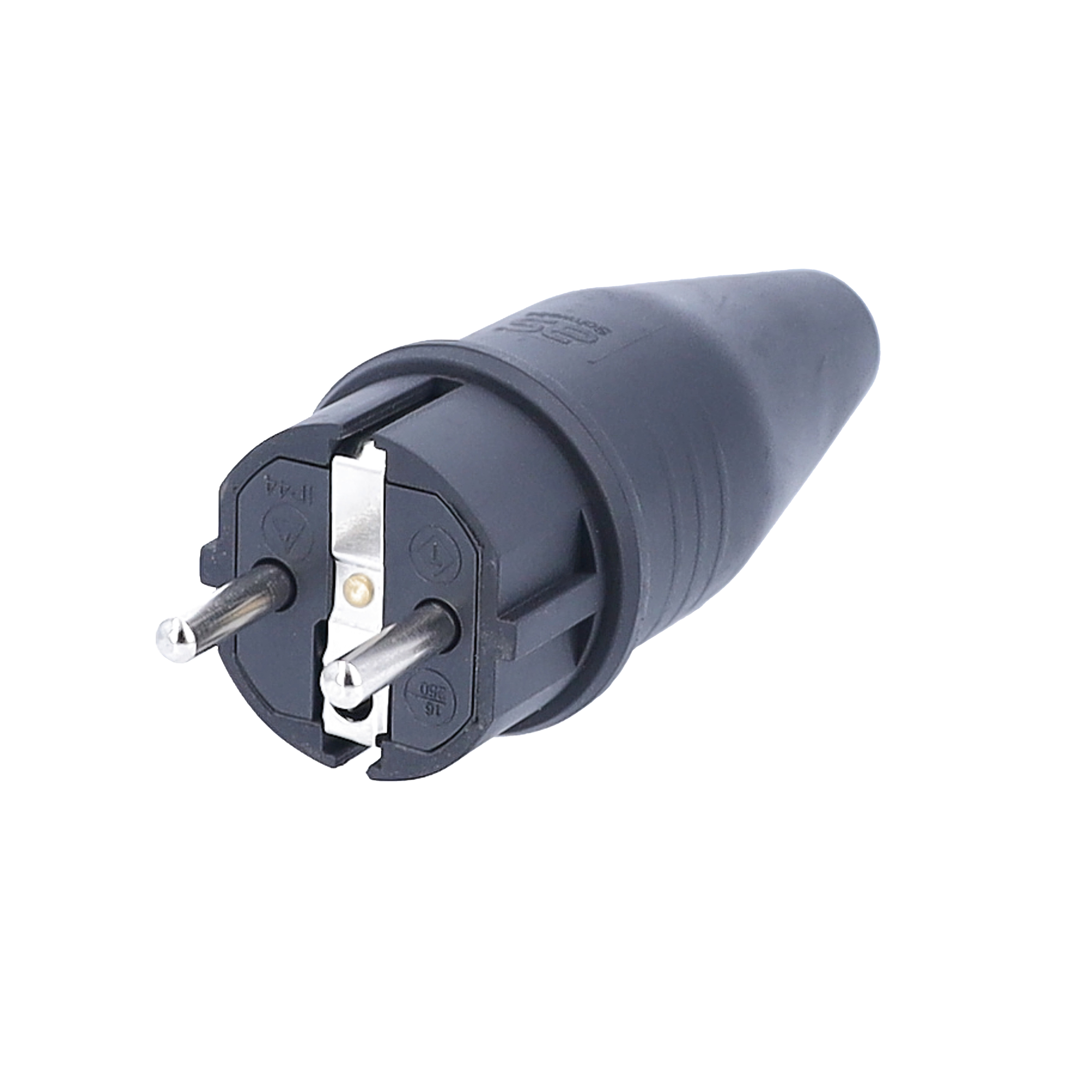 Rubber Stekker randaarde dubbel aardingscontract 230V/16A IP44 tot 3x2,5 mm² zwart