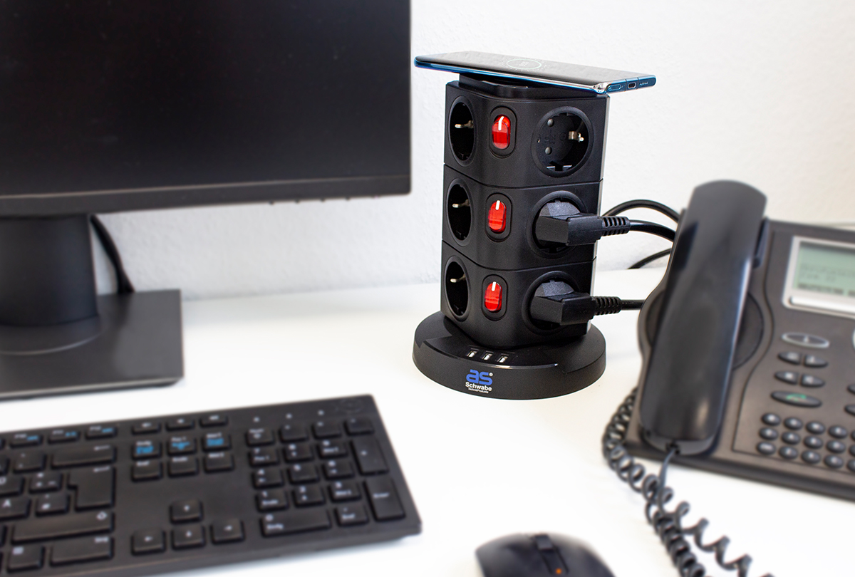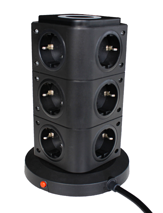 Stekkertoren 12 x randaarde 3 x USB met inductielader 2m kabel