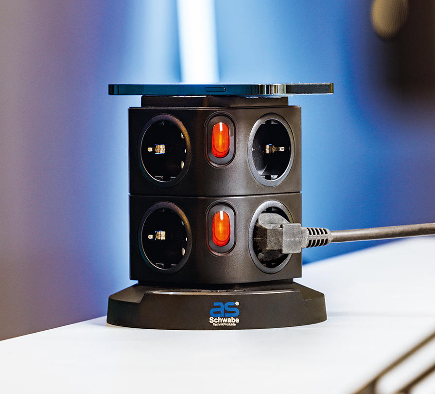 • 8x geaarde contactdoos 230V/16A met 2x verlichte aan/uit-schakelaar