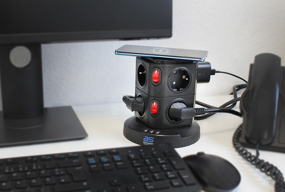 Stekkertoren 8 x randaarde 3 x USB met inductielader 2m kabel