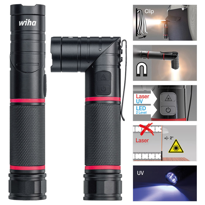 • Laser voor het positioneren van boorgaten op het plafond. UV-licht geschikt voor technische inspecties